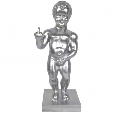 Cette statue décorative en résine finition argent réinvente l'art de la provocation. Notre sculpture d'art aux dimensions de H. 35 x L. 14 x l. 11 cm et son poids de 0.7 kg fusionne modernité et audace.