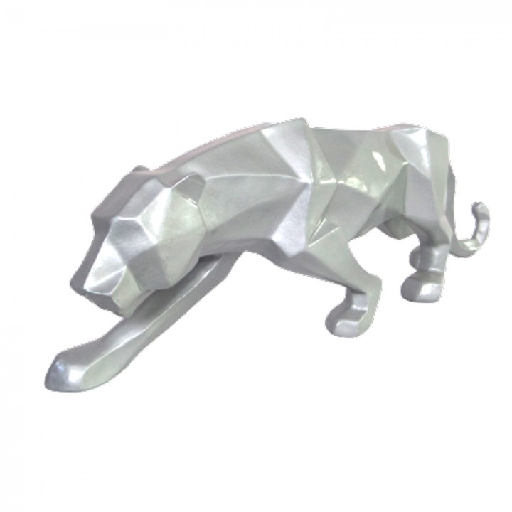 Cette statue en résine aux reflets argentés scintillants aux dimensions de H. 20 x L. 65 x l. 12 cm et son poids de 1.5 kg. Une pièce élégante qui combine la modernité de l'origami à la préciosité de l'argent.