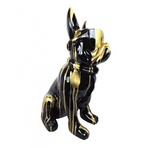Cette sculpture en résine d'un chien bouledogue français aux dimensions de H. 60 x L. 42 x l. 30 cm et son poids de 5 kg. Une statue de chien en résine qui combine style grunge et élégance urbaine. Tous nos articles sont en stock réel - Expédition sous 24/48H