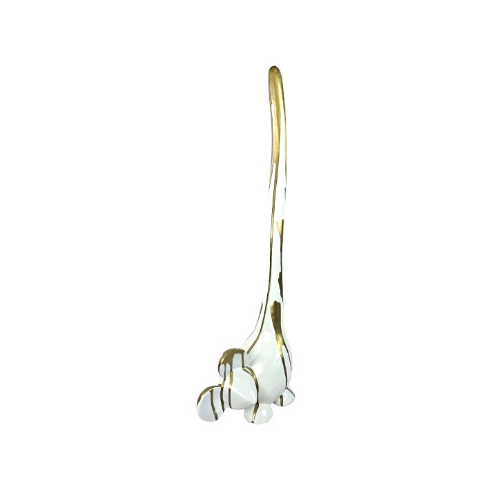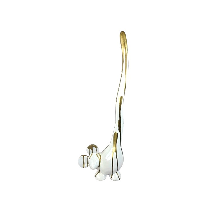 Cette sculpture en résine d'une souris aux dimensions de H. 83 x L. 30 x l. 16 cm et son poids de 1.5 kg. Une création avant-gardiste alliant pureté et extravagance. ATTENTION : Le modèle que vous recevrez sera unique, peint à la main et différent de la photo présentée ici. Chaque pièce possède sa propre combinaison de couleurs avec touches dorées sur fond blanc tout en conservant le même esprit luxe contemporain. Tous nos articles sont en stock réel - Expédition sous 24/48H