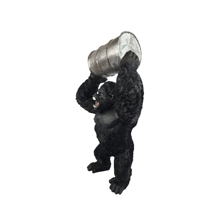 Donnez du caractère à votre déco avec cette statue en résine Gorille Noir avec tonneau. Commandez maintenant et laissez sa présence impressionnante transformer votre intérieur !