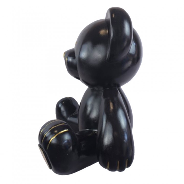 Cet ours en résine noir et or de grande taille transforme instantanément votre espace grâce à sa finition laquée noire profonde rehaussée de détails dorés éclatants. Son style épuré et moderne trouve sa place dans tous les intérieurs contemporains, des lofts urbains aux maisons familiales. Une pièce rare qui ne passera pas inaperçue chez vos invités.