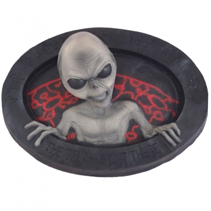 Ajoutez une touche insolite à votre déco avec cette statue alien extraterrestre murale en résine (93 x 70 x P 27 cm). Son relief réaliste et sa finition effet pierre en font une pièce unique pour intérieur ou extérieur. Résistante et facile à fixer, parfaite pour un salon, un bar ou une salle à thème. Poids : 8 kg.