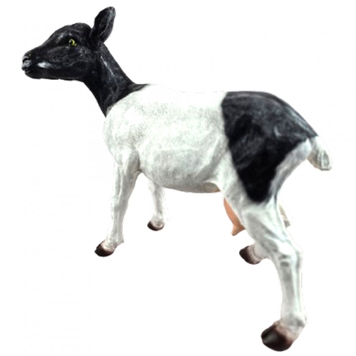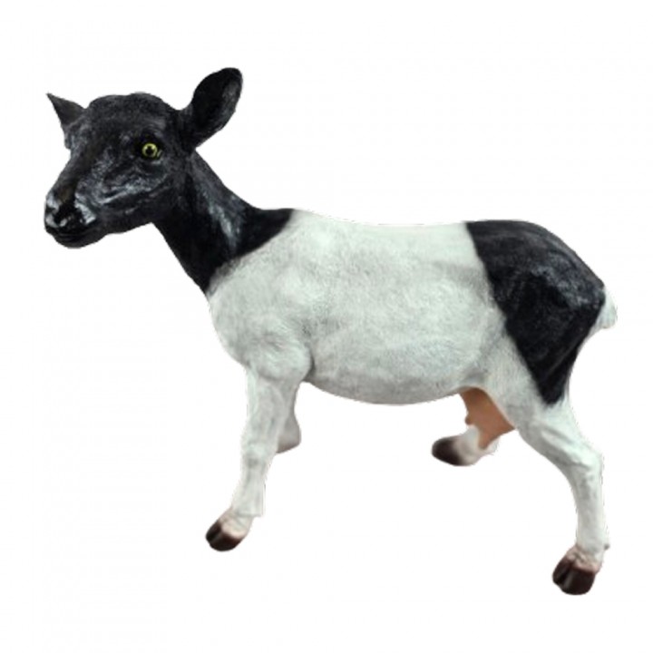Figurine chèvre 50 cm noir et blanc résine réaliste haute qualité. Reproduction fidèle pour décoration jardin, terrasse, ferme pédagogique. Finition peinte main détaillée, poids 2,5 kg stable. Transport offert France. Fabrication soignée.