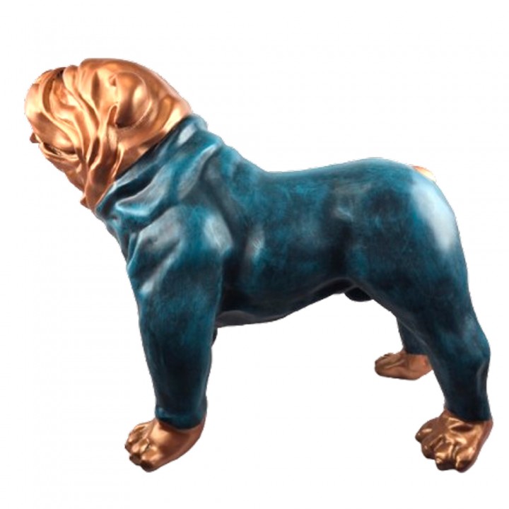 Statue bouledogue anglais résine effet jeans corps et cuivre antique accents
