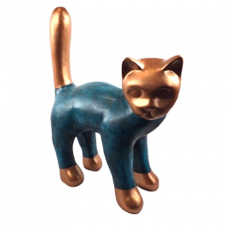 La statuette est fabriquée en résine, un matériau apprécié pour sa solidité et sa résistance. La finition associe un bleu jeans profond au cuivre antique. Le contraste entre les deux nuances donne un rendu contemporain, idéal pour un objet décoratif animal design.