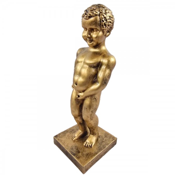 Cet accessoire décoratif inspiré du célèbre Manneken Pis présente une finition dorée patinée aspect antique. Dimensions : H 35 x L 14 x l 11 cm, poids 0.7 kg. Conçue en résine robuste, cette pièce décorative s'adapte aux ambiances intérieures et extérieures. Ses nuances dorées vieillies confèrent authenticité et cachet à vos aménagements.