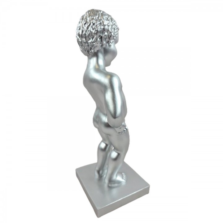 Cette pièce décorative propose une interprétation du célèbre personnage bruxellois dans version argentée contemporaine. Dimensions : H 35 x L 14 x l 11 cm, poids 0.7 kg. Interprétation décorative inspirée de l'icône de Bruxelles, ce produit n'est pas un article sous licence officielle. Sa finition argentée brillante apporte luminosité et modernité aux décors intérieurs et extérieurs.