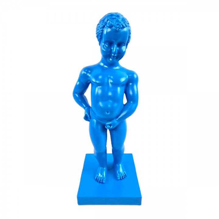 Cet objet décoratif propose libre interprétation du célèbre personnage bruxellois dans version bleu cyan contemporaine. Dimensions : H 35 x L 14 x l 11 cm, poids 0.7 kg. Représentation décorative inspirée de la figure de Bruxelles, ce produit n'est pas un article sous licence officielle. Sa teinte bleue vive apporte dynamisme chromatique et modernité aux aménagements intérieurs et extérieurs.