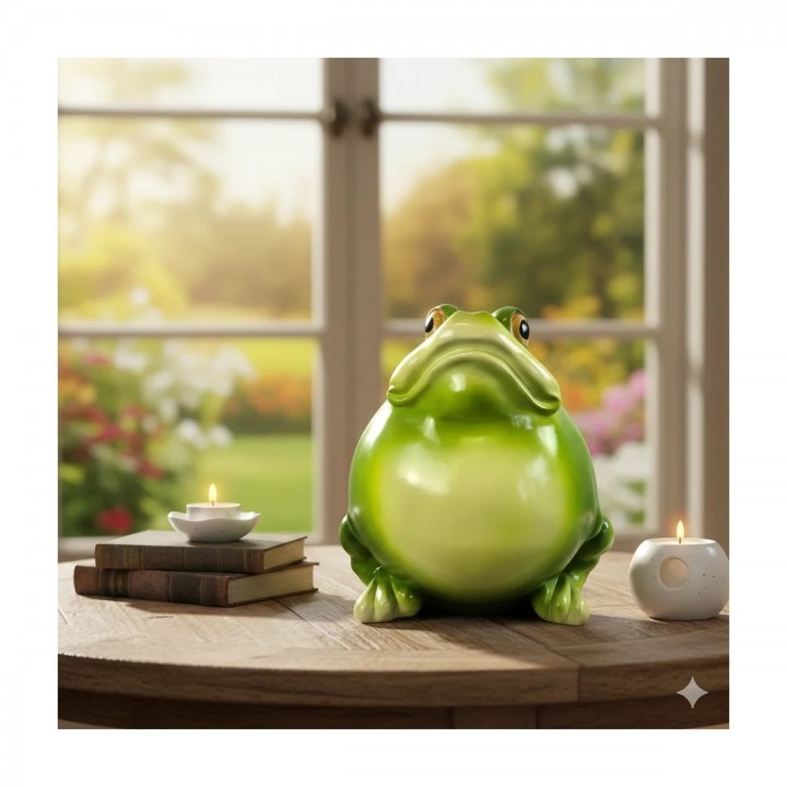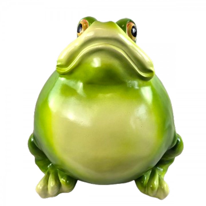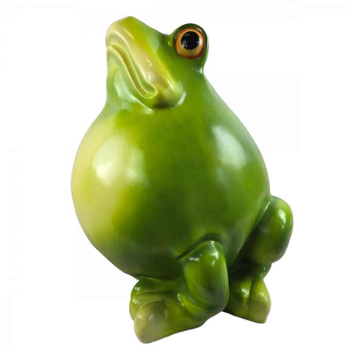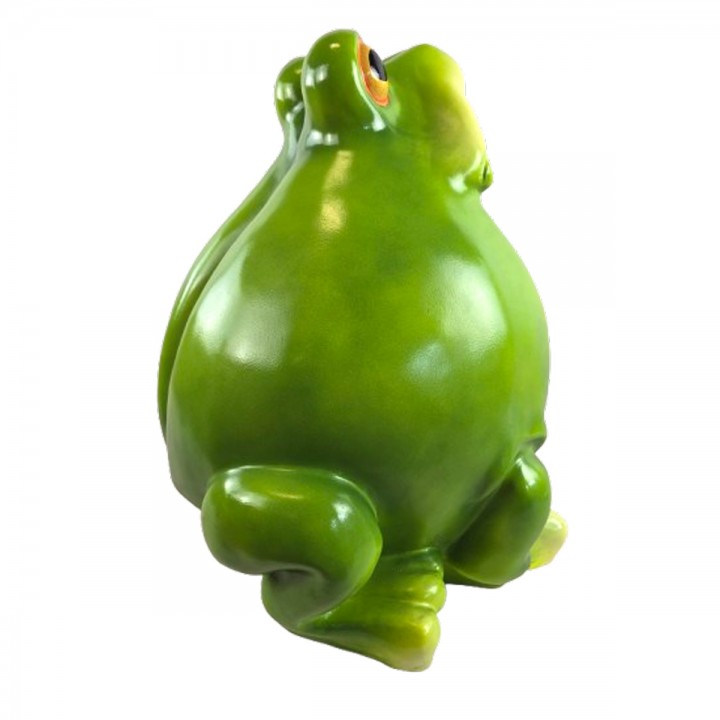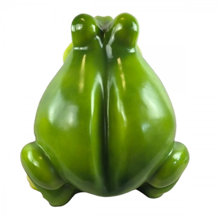 Pattes détaillées avec doigts palmés sculptés ajoutent réalisme saisissant. Ventre arrondi volumineux caractéristique confère silhouette reconnaissable attendrissante. Coloris vert dégradé valorise reliefs anatomiques créant jeux ombres lumières naturels.