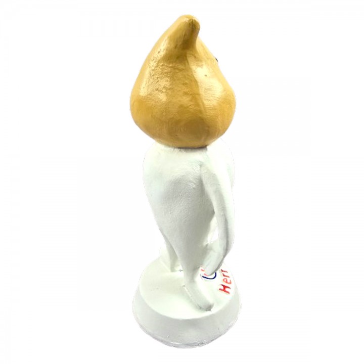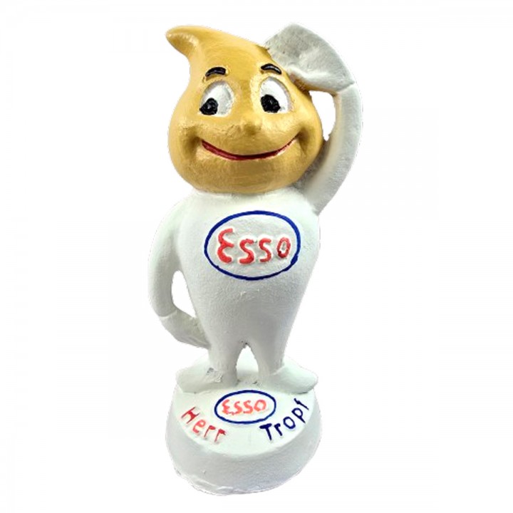 Cette figurine rend hommage personnages masculins publicité automobile vintage. Dimensions : H 24 x L 10 x l 10 cm, poids 0.5 kg. Fabriquée en résine durable, cette sculpture affiche tête goutte jaune souriante, casquette blanche et geste salut main levée. Ornement nostalgique trouve sa place décors intérieurs et extérieurs.