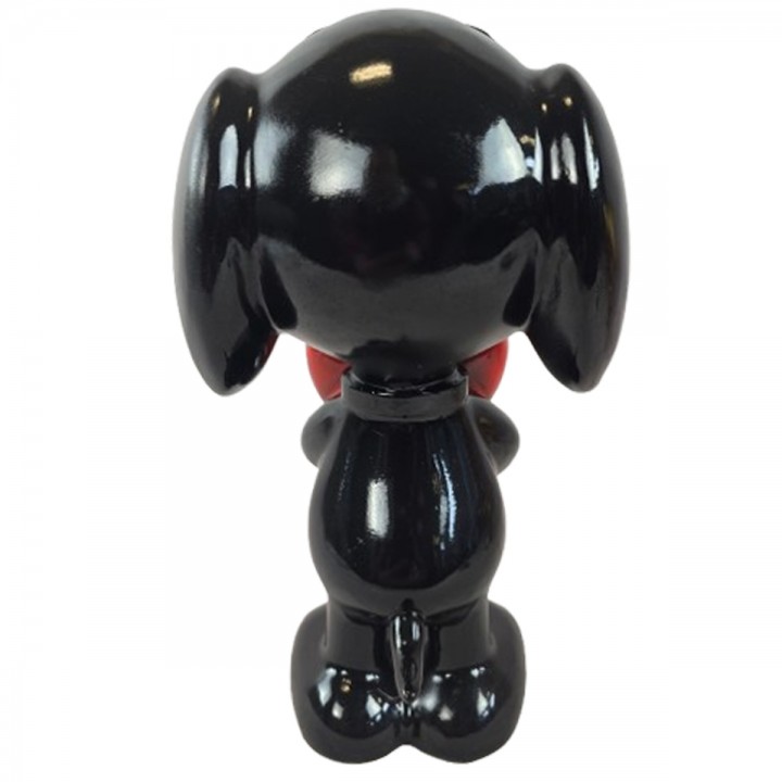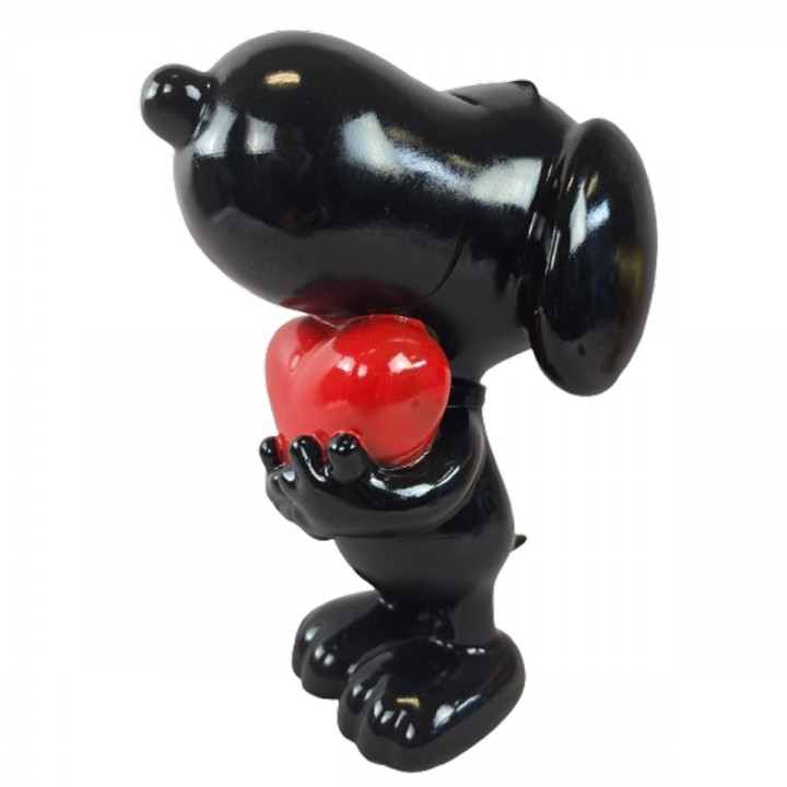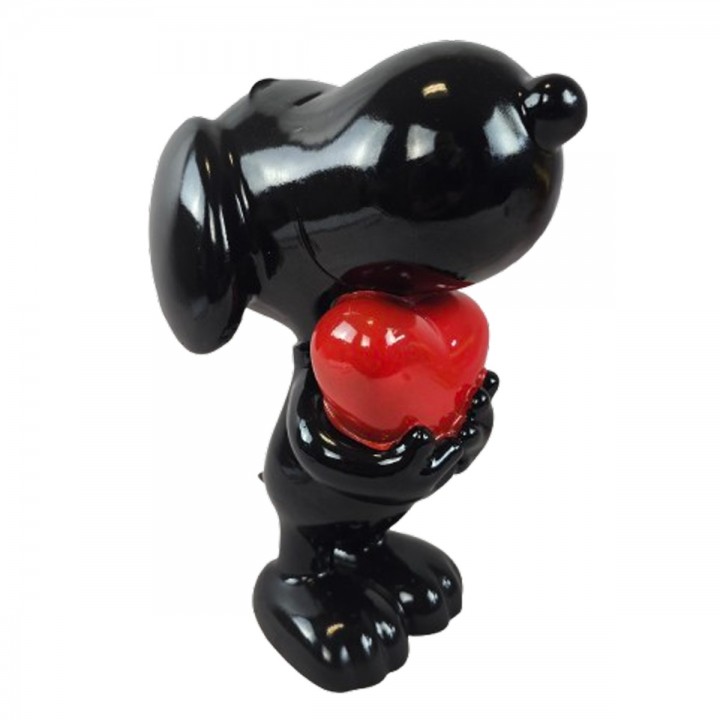 Cette sculpture évoque Snoopy célèbre beagle bande dessinée Peanuts. Dimensions : H 30 x L 17 x l 15 cm, poids 0.7 kg. Réalisée en résine robuste, cette pièce affiche coloris noir brillant, cœur rouge éclatant et silhouette attendrissante reconnaissable. Ornement style cartoon trouve sa place décors intérieurs et extérieurs.
