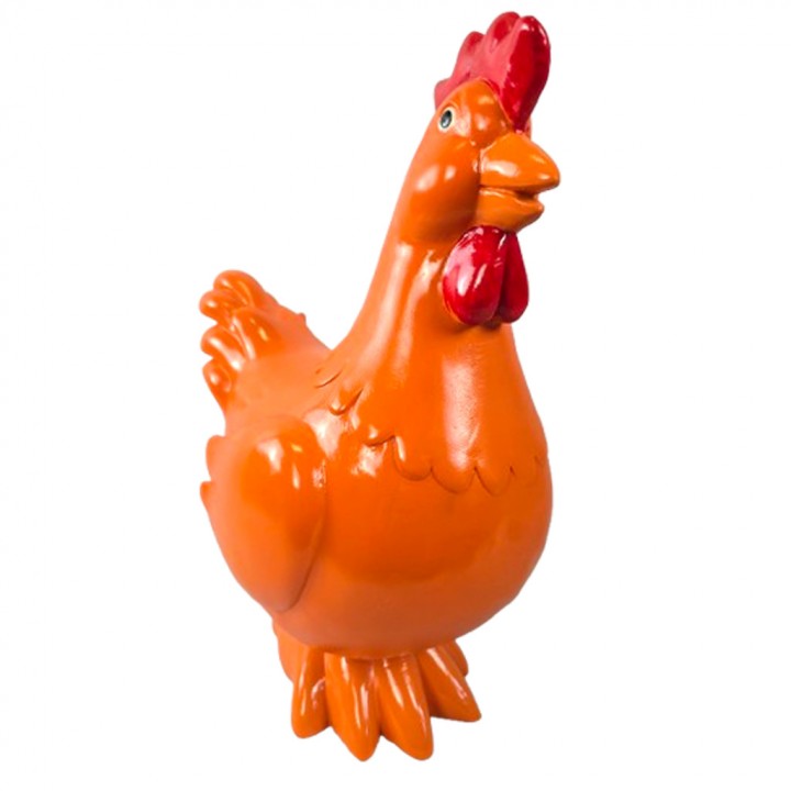 Le polymère haute qualité restitue fidèlement l'anatomie du gallinacé. Les plumes gravées en relief sur le corps créent une texture visuelle riche. Le vernis brillant amplifie l'éclat des pigments orange et rouge. Cette combinaison bicolore génère un contraste dynamique qui capte immédiatement l'attention.