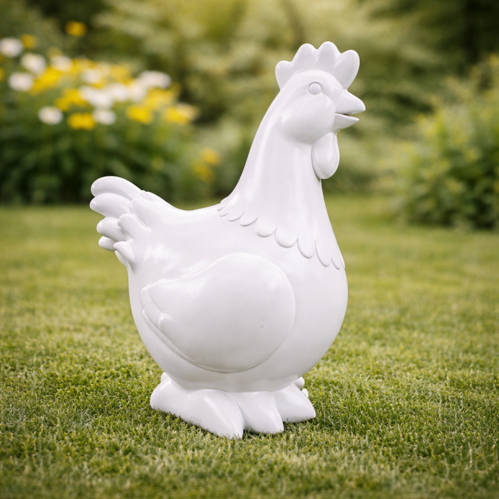 Les terrasses urbaines aux aménagements minimalistes intègrent aisément cette interprétation épurée du gallinacé. Combinez ce volatile avec des plantations en pots blancs pour créer une composition monochrome. L'entrée d'habitat moderne se distingue avec cette touche raffinée. La sculpture capte la lumière naturelle sous différents angles.
