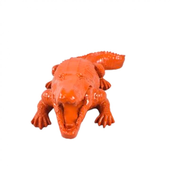 Le polymère haute performance capture avec exactitude l'anatomie des crocodiliens. La texture écaillée recouvre intégralement le corps avec un réalisme saisissant. La finition brillante amplifie l'intensité de l'orange saturé. Cette teinte énergique métamorphose un prédateur redoutable en élément décoratif contemporain dynamique.