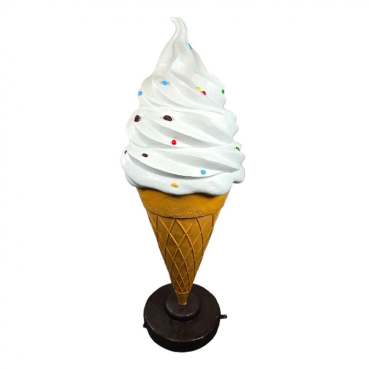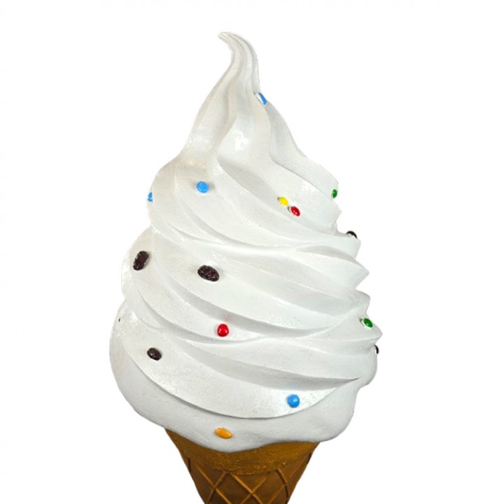La spirale tourbillonnante blanche reproduit fidèlement l'aspect crémeux onctueux d'une authentique glace italienne artisanale. Les nervures en relief simulent les stries caractéristiques de l'extrusion mécanique professionnelle. Cette attention portée aux détails renforce la crédibilité commerciale de l'ornement publicitaire auprès de la clientèle exigeante.