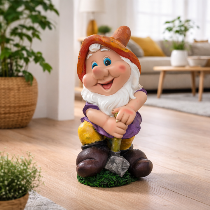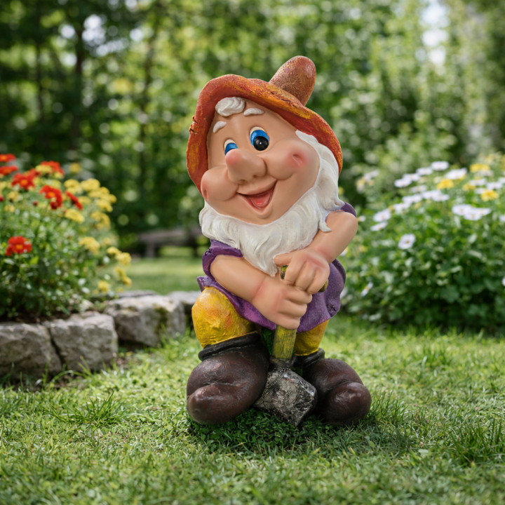 Cette statue nain de jardin résiste-t-elle au gel ? Oui. La résine haute densité supporte les températures négatives sans fissure.