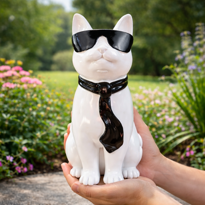 Cette statue chat avec lunettes en résine est-elle solide ? Oui. La résine haute densité assure une résistance mécanique durable. La finition laquée protège la surface des chocs légers.