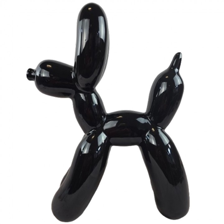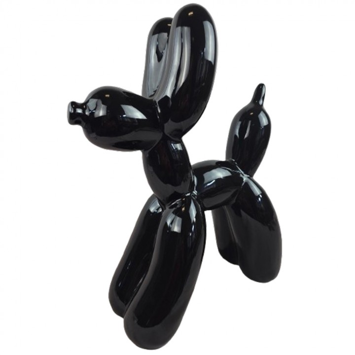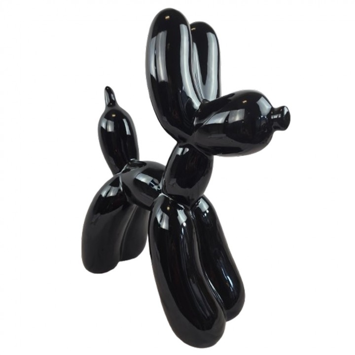 Cette sculpture chien ballon noire mesure 50 cm de hauteur pour 40 cm de longueur et 17 cm de largeur. Son poids de 4 kg assure une excellente stabilité sans fixation. Ses volumes arrondis — pattes, corps, tête et queue — reproduisent fidèlement l'esthétique gonflée emblématique du chien ballon pop art, pour un rendu visuel fort et immédiatement identifiable.