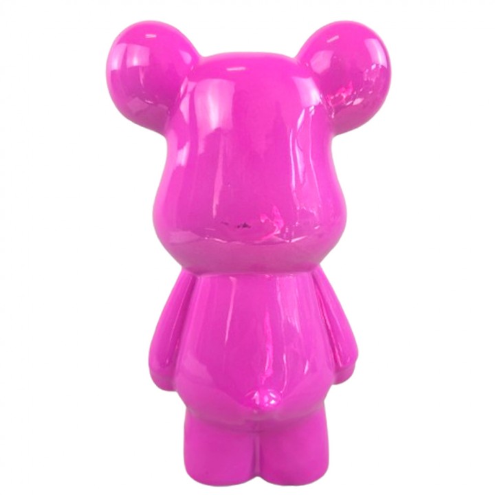 Cette statue ours moderne s'intègre dans des univers audacieux et colorés. Son fuchsia intense fonctionne aussi bien dans une chambre pop colorée que dans un intérieur contemporain où il joue le rôle d'unique accent de couleur.