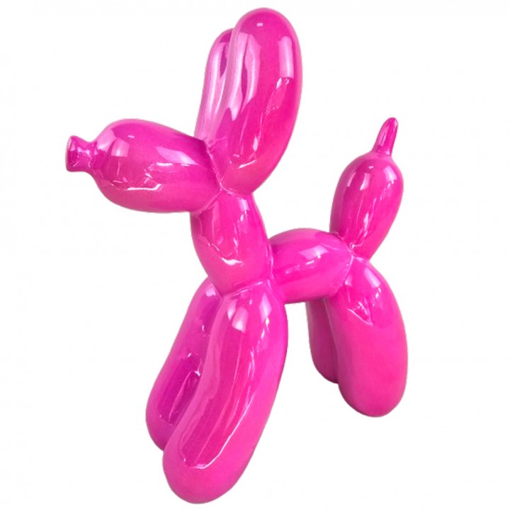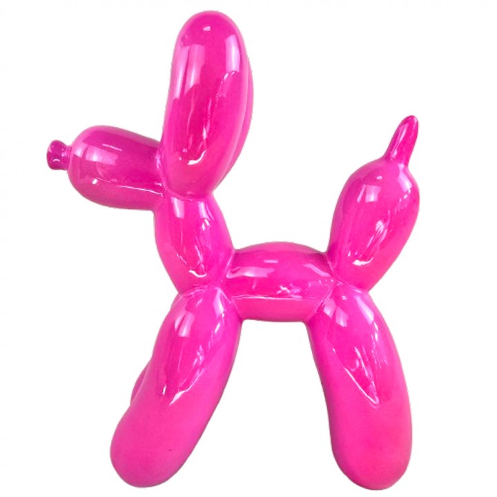 Cette statue chien ballon céramique rose fuchsia laquée 27 cm est une sculpture décorative pop art à l'énergie immédiate — figurine chien céramique couleur vive idéale pour dynamiser un intérieur contemporain, ponctuer une étagère ou offrir un objet déco chien rose design à l'impact visuel direct et durable.